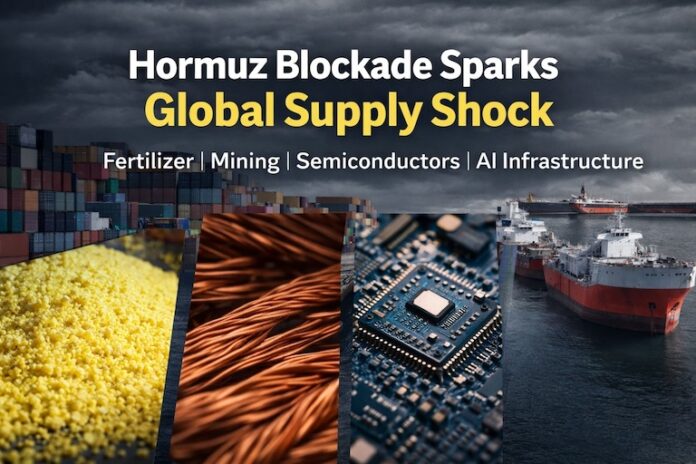 The Strait of Hormuz has become the center of a major trade disruption after Iranian forces attacked commercial vessels following U.S. and Israeli strikes on Iran. Shipping insurers canceled coverage across the corridor, which forced major shipping lines to halt transit through the passage. Tankers and cargo ships now anchor outside the strait as fleets wait for security guarantees that have not appeared. The waterway measures about 21 nautical miles across at its narrowest point, yet it carries roughly 20 percent of global oil shipments under normal conditions. Energy flows draw attention, yet the same corridor carries chemicals and industrial inputs that support agriculture, semiconductor manufacturing, mining, and global manufacturing supply chains.
